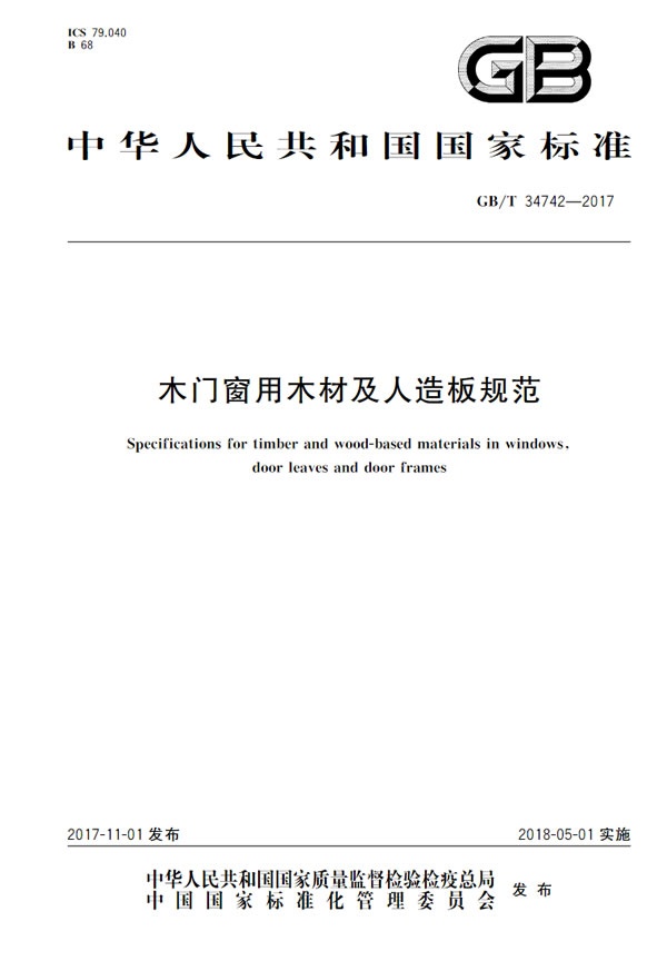 木門窗用木材及人造板規(guī)范GB/T 34742-2017