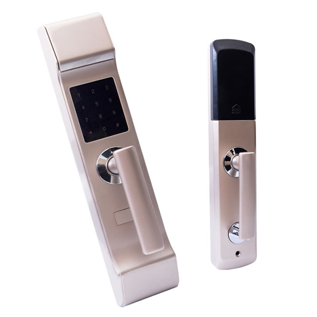 產品優勢:電量傳感器、關門傳感器、主鎖舌傳感器、防撬傳感器、機械鑰匙開門傳感器、瑞典FPC指紋模塊、高安全干擾碼解鎖、獨立加密芯片、高強度鋼化玻璃、周期/時效/臨時密碼、全圖形化配置、報警提示、防貓眼技術開鎖