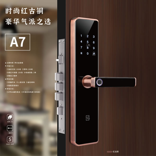 • 必達智能鎖A7 時尚紅古銅 豪華氣派之選 廣東必達保安系統有限公司