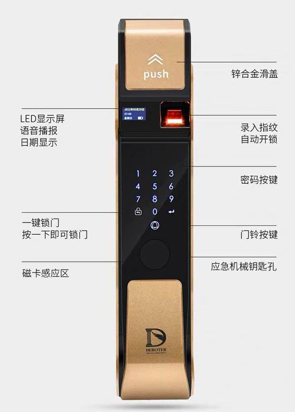 科技的飛速發展充實著我們身邊的生活,帶來了便捷,帶來了高效,帶來了安全。想必多數人都有過類似出門忘帶鑰匙、鑰匙丟失類的問題。尤其是現在多數年輕人獨身在外打拼,快節奏的生活、高強度的工作,多少更容易引發小失誤的發生,丟鑰匙事小,挽回起來就麻煩了,找人開鎖花錢還耽誤時間,緊接著還要想著換鎖……實實在在的一石掀起千層浪。 當然如果家里有了密碼指紋鎖,這方面的問題真的就不是問題了。不過話說回來越是便捷反而越是讓人擔心安全問題,密碼偷窺、復制指紋膜、錫紙開鎖、貓眼盜竊,暴力敲門……真實案例比比皆是。也著實讓人感覺只能在選擇中擔心,又迫不得已的在擔心中選擇,最后無奈的安慰自己所做的一切都是放君子不防小人。不過今天德諾特指紋智能鎖真的是迎著這些問題來的,說到德諾特,想必大家都知道他們做安全門是非常有名的,但是智能指紋鎖怎么樣?讓我們一起來認識下工藝品外表的它那顆智能、安全、堅強、高效的心。
