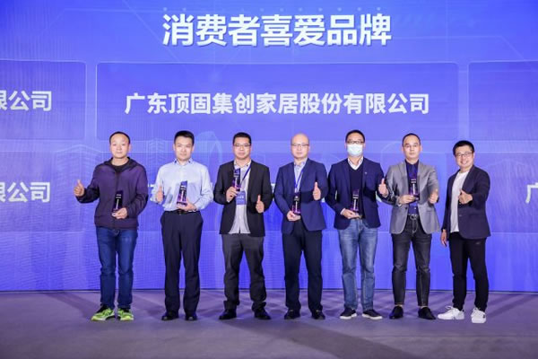 △頂固公司代表(右二)上臺(tái)領(lǐng)取“消費(fèi)者喜愛品牌獎(jiǎng)”